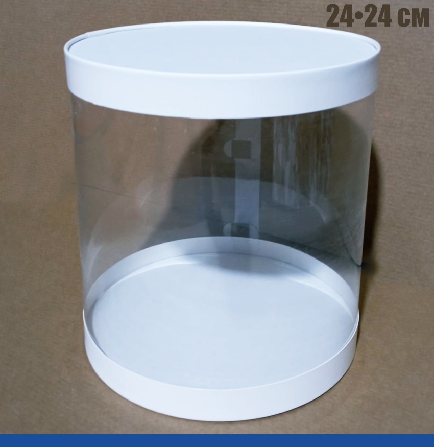 Коробка тубус с прозрачной боковиной 24•24 см - купить выгодно упаковка 1, 5, 10 шт. Белая. Крышка+дно+боковина. Круглая коробка для тортов и зефирных букетов. Быстрая доставка. Скидка на первый заказ и постоянным покупателям 5%. Ищите промокод для скидки на нашем сайте. Служба заказов: WhatsApp/Viber/Telegram +7(977)807-57-53